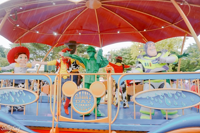 因為下雨的緣故,米奇跟他朋友們都穿上了雨衣~好可愛